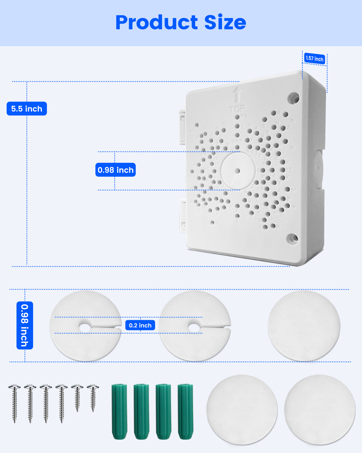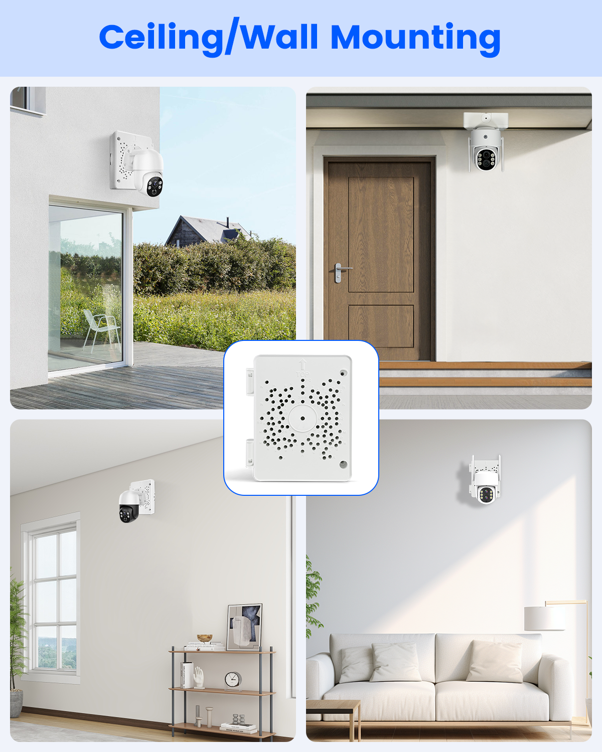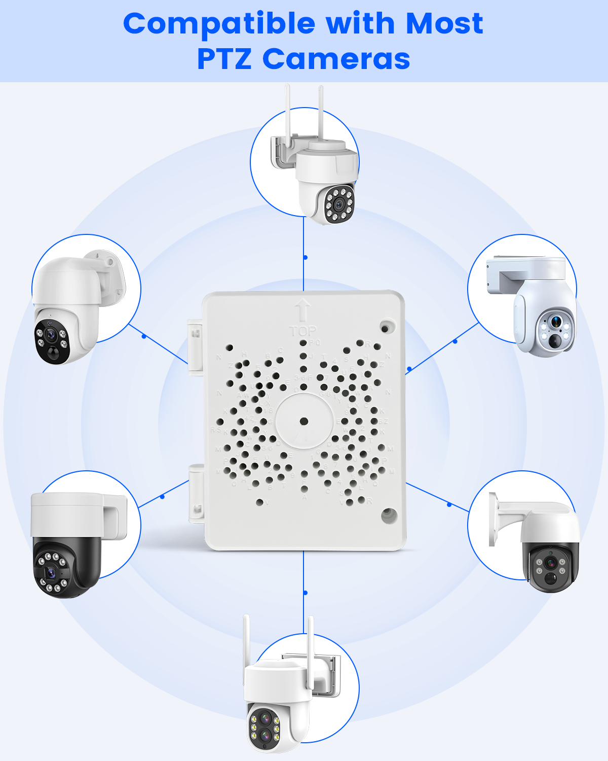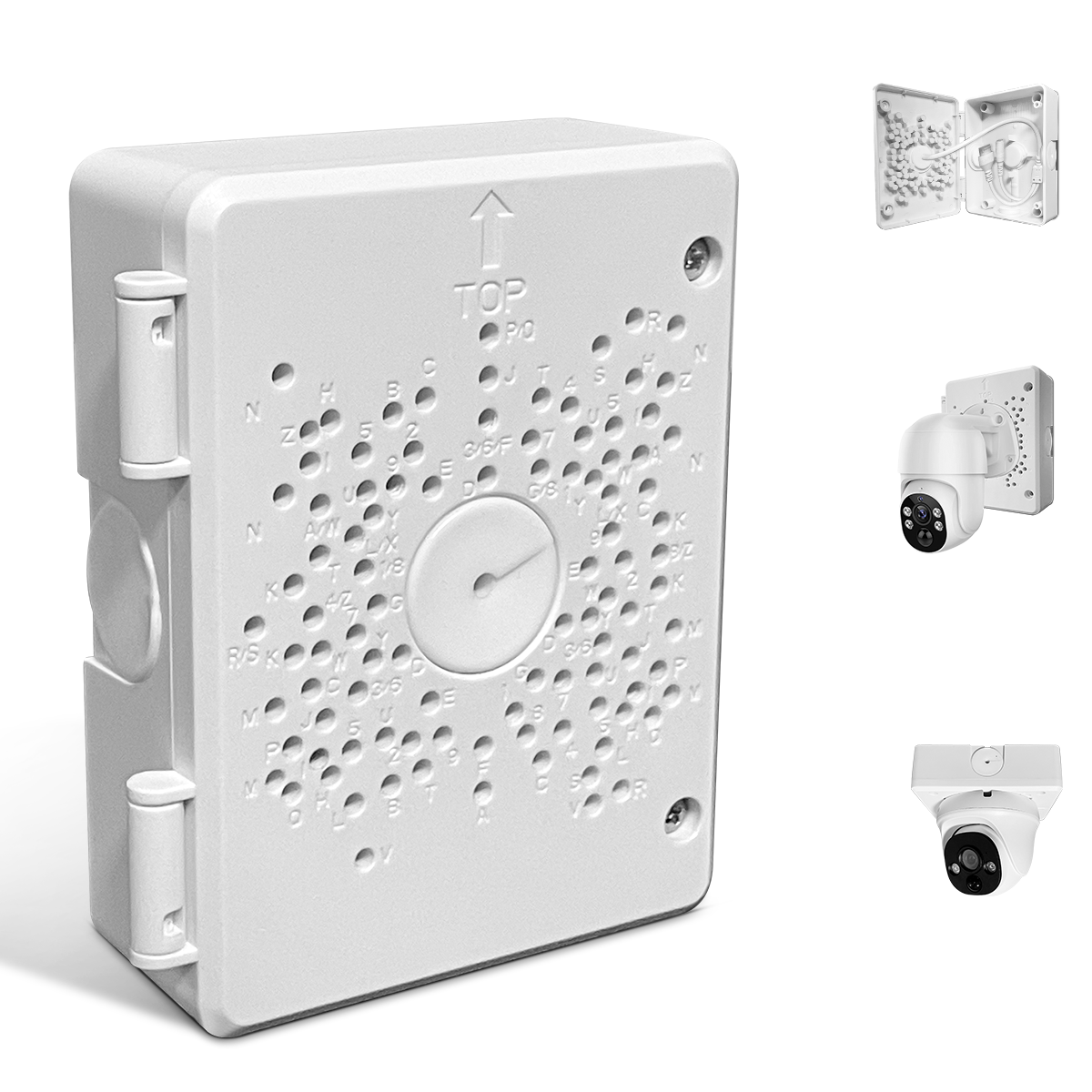 • Product Specifications : The junction box measures 5.5 x 4.13 inches, with a center hole diameter of 0.98 inches. It’s designed for surface mounting and made from durable ABS plastic and rubber. The box comes in white and is compatible with a variety of PTZ surveillance systems (customizable plate with drillable holes for different camera models).