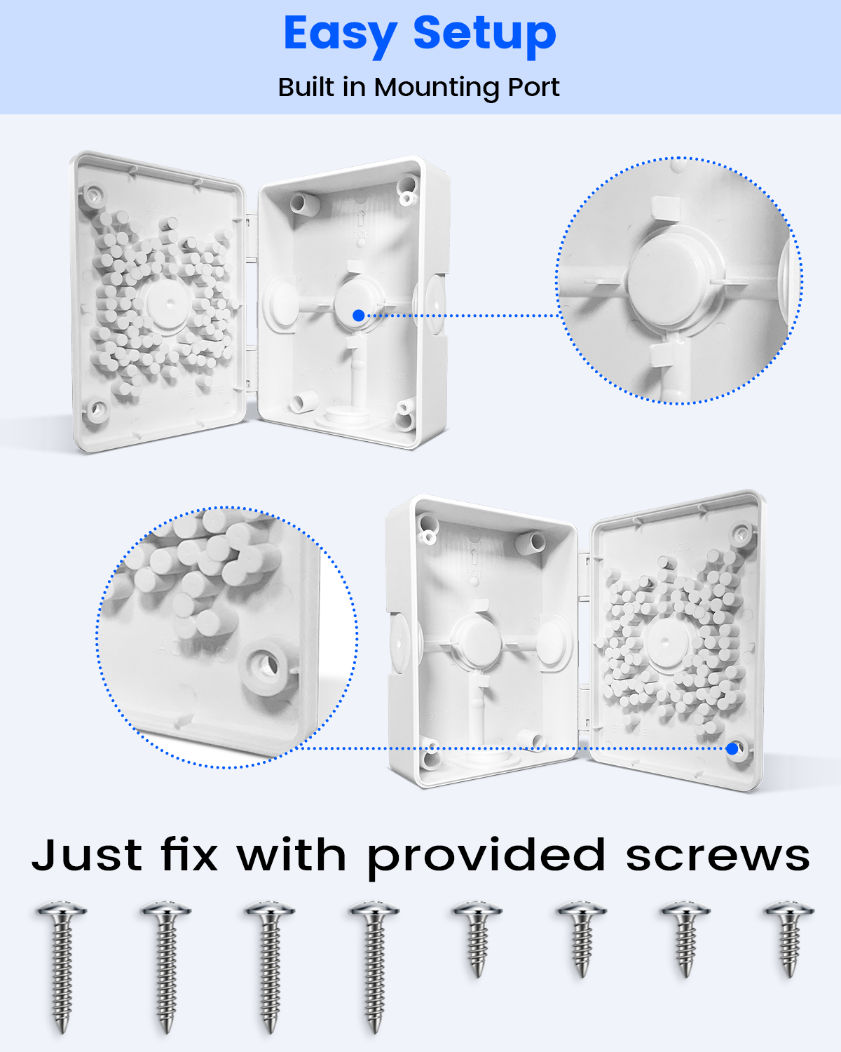• Easy Installation : This sturdy junction box is designed to prevent damage during installation, and it’s reusable. It includes strong screws for secure mounting, making it easy to install according to your needs.
